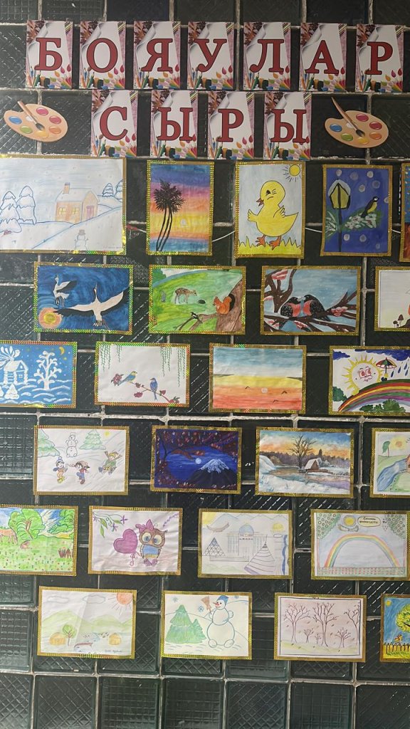 Бүгін онкүндігіміздің 2 күні. 1 сынып оқушылары “Бояулар сыры” атты тақырыпта еркін суреттер көрмесін жасады.