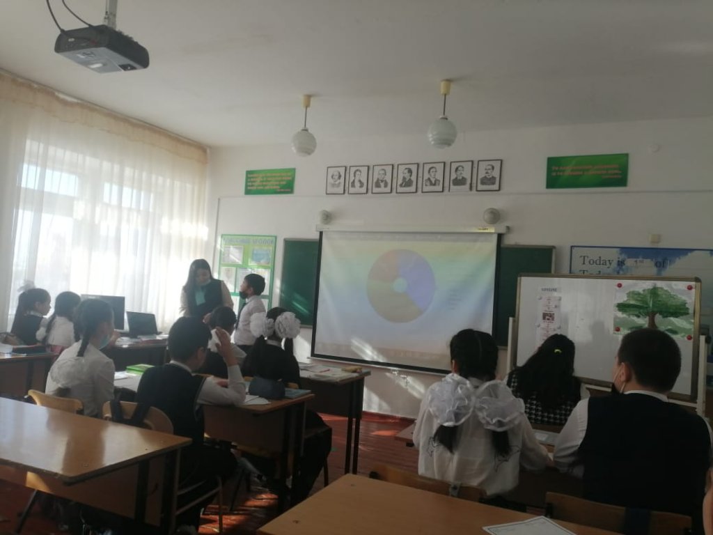 "Welcome to English world" атты ағылшын тілі апталығының өтуіне орай, 5 ж сыныбында “Biography of a writer” тақырыбында ашық сабақ өткізілді. Оқушылар Абай Құнанбаевтың өмірі жайлы ақпарат алып, қызықты тапсырмалар орындады.