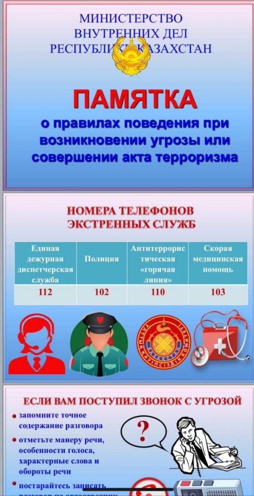 Қауіп төнген немесе терроризм актісі жасалған кездегі жасалынатын іс-әрекет ережелері туралы жадынама