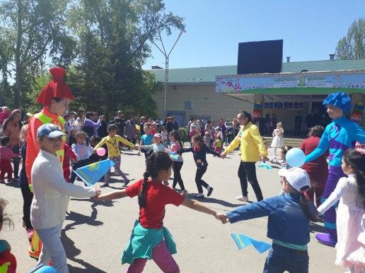 Утром ребят встретили воспитатели пришкольного лагеря, познакомили с режимом работы, разучили название команд, девизы и командные песни. В честь праздника «Дня защиты детей» в центальной площади нашего аула был организован парад и праздничный концерт для детей. Дети с пришкольного лагеря тоже приняли активное участие в празднике.