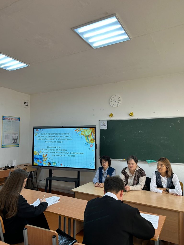 “Ақмол ауылының жалпы орта білім беретін мектебінде” 11 сынып оқушыларына арналған жаратылыстану-математика бағытын бойынша Президенттік олимпиаданың мектепішілік кезеңі өтті. Олимпиадаға 11 “Б” сынып оқушылары, “Үздік аттестат” үміткерлері Таскужин Руслан мен Жандарбек Қарақат қатысып математика, физика, химия, биология пәндері бойынша тапсырмалар орындады.