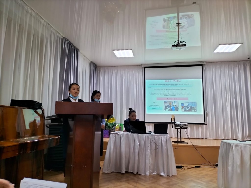 Директордың ғылым жөніндегі орынбасары Н.З.Әбдіғапарова мен Р. Б. Татаева 2021-2022 оқу жылындағы топтар фокусының жұмысы туралы айтып, і тоқсанға арналған міндеттерді белгіледі. Екінші тоқсан бойы жасалған жұмыстарын презентация арқылы көрсетіп талдады.