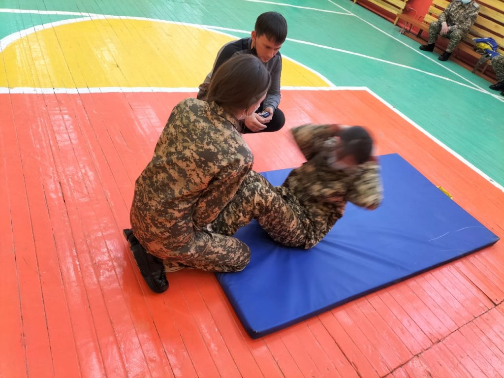 Өскелең ұрпаққа патриоттық тәрбие беру әрқашан қазіргі мектептің маңызды міндеттерінің бірі. Мектепте НВиТП басшысы Ж. Т. Ахманов басшылығымен "Қаһарман" әскери-патриоттық үйірмесі жұмыс істейді, үйірме мақсаты жасөспірімдерді ҚР Қарулы күштеріне қызметке даярлау, балаларға салауатты өмір салтын тәрбиелеу, заңдылық пен құқықтық тәртіпті құрметтеу болып табылады.Балалар үлкен ықыласпен "қаһарман" үйірмесіне қатысады. Онда 6-11 сыныптардың 30 оқушысы қатысады. Балалар атыс, саптық дайындықты, ҚРКҚ құрылымын оқиды, әскери деректі фильмдерді оқиды. Жұмыс нәтижесі "Жас Ұлан" әскери-патриоттық ойынында, "Айбын" әскери жиынында, АӘД бойынша пәндік олимпиадаларда жүлделі орындар иелері , аудандық және облыстық сап және ән байқауларының жүлдегерлері болып табылады.