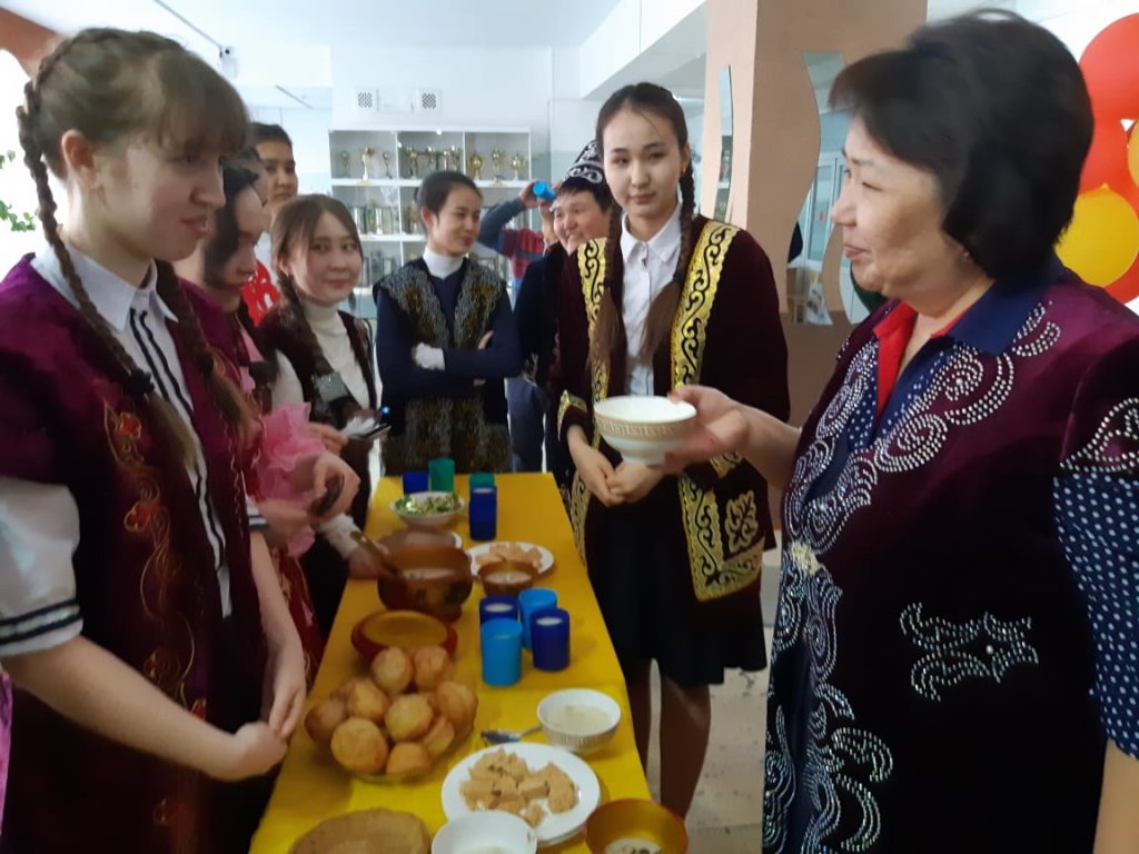 Біздің мектебімізде бүгіннен бастап наурыз мейрамын тойлауды бастап кетті. Барлық мектеп мұғалімдері мен оқушылары ұлттық костюмде киініп, бір-бірімен көрісу дәстүрінде жақсы тілектерін жаудыра жандандырды. Көрісуден соң мереке концерттік бағдарламаға жалғасты. Мерекелік дастархан жайылып қазақтың ұлттық тағамдары қойылып дәмнен ауыз тигізді.