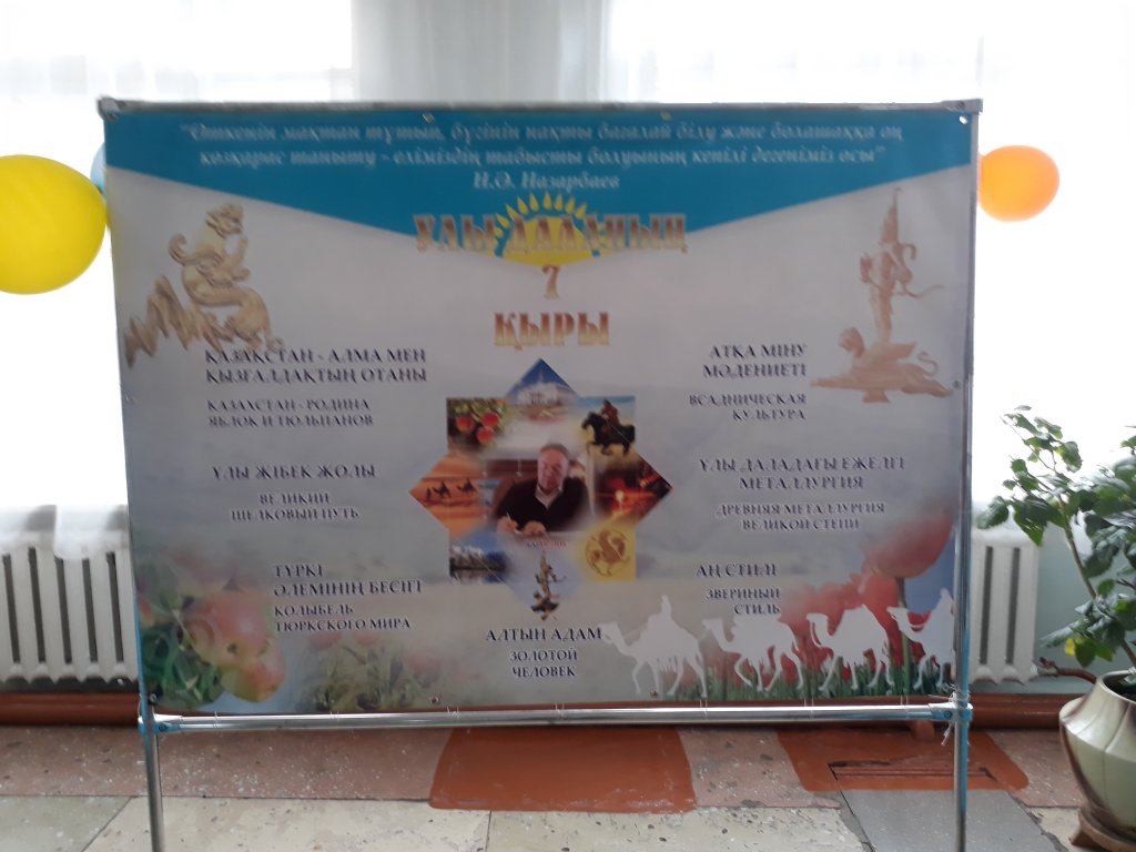8 сәуір күні біздің мектепте эстетикалық цикл салтанатты түрде ашылды. Осы онкүндіктің жоспарында Н.Ә.Назарбаевтың "Ұлы даланың жеті қыры" мақаласына арналған көрменің ашылуын жоспарланды. Технология және көркем еңбек пән мқғалімдері өз бұйымдарында осы жеті қырын көрсетуге тырысты. Әр мұғалімнің материалды және орындау техникасын таңдауға өз көзқарасы болды. Бұл көрменің мақсаты өскелең ұрпаққа еліміздің тарихын көрсету. Бұл көрменің міндеттері шеберлер бұйымдарының сұлулығын және экспонаттардың ауқымын көрсету.