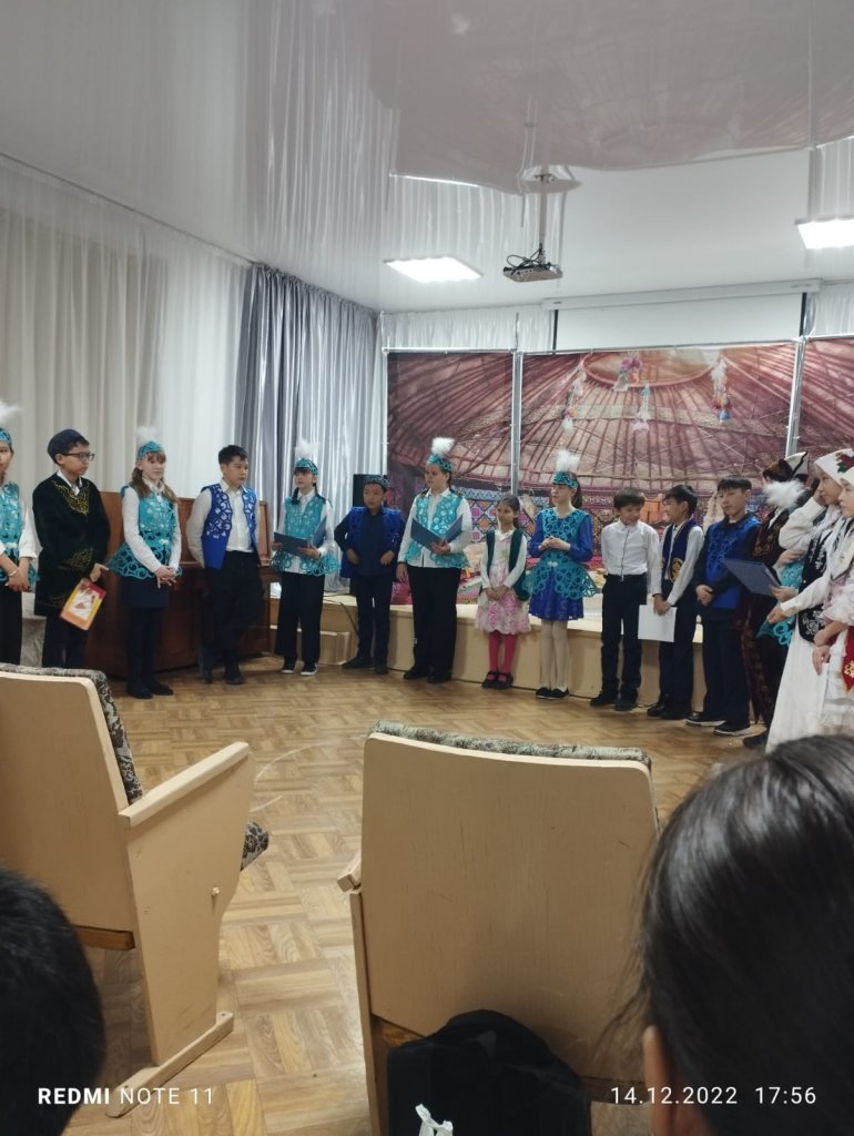 14 желтоқсанда тарих онкүндігі аясында мұғалім А А Ибраева 5 б, 5в және 5 Е оқушыларымен "қазіргі замандағы халықтық дәстүрлер мен әдет-ғұрыптар" атты іс-шара өткізді.