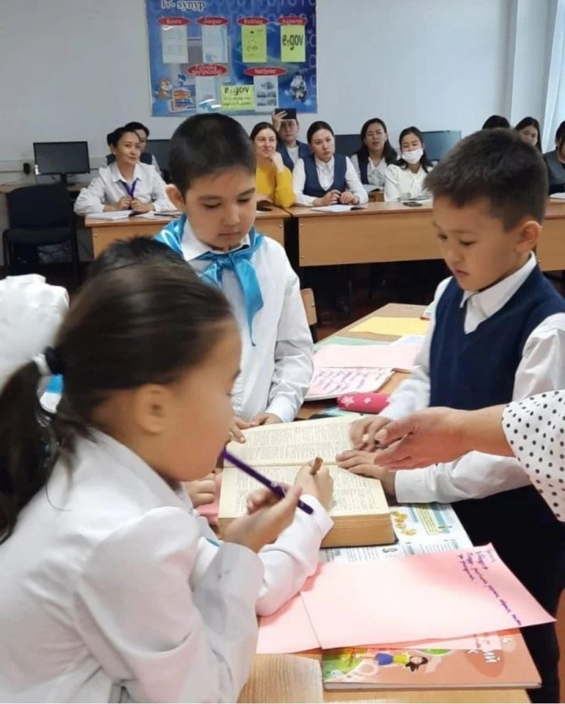 Жас мамандардың әдістемелік мәдениетін арттыру және практикалық көмек көрсету мақсатында мектеп директорының оқу ісі жөніндегі орынбасары Яхина Алла Айдарбековна сабақ үлгісін ұсынды. 4 "Д"сынып оқушыларымен оқыту дағдыларын дамыта отырып өткізілген сабақта пікірталас , танымдық ,психологиялық құзыреттіліктер орын алды. Мәтін түрлерін мен олардың ерекшелігін ажырата алу; сурет арқылы тірек сөздер мен сөз тіркестерін анықтай отыра мәтін мазмұнын түсіне білу; сөз таптарының негізгі белгілерін анықтай алу талаптары сабақтың мақсатын құрады. Сабақ материалының орынды таңдалып, дұрыс құрылуы сәтті өтуіне ықпал етті.