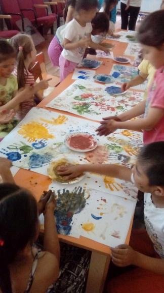 Сегодняшний день в пришкольном лагере был назван  «Днем красок».  Ребята  активно и  с большим удовольствием участвовали в данном мероприятии. Получили позитивные эмоции на весь день. Группа воспитателей и вожатая приготовили интересные задания в виде ребусов и загадок.   Ребята  обменялись памятными футболками, на которых   нанесены  авторские  рисунки  акварельными красками.