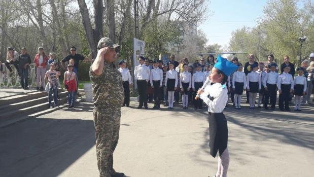 Мектебіміздегі жылдағы қалыптасқан дәстүрге сай осы айтулы мерекеге және Отанымыздың Қарулы Күштерінің 25 -жылдығына орай бастауыш 3-4 сыныптар оқушыларының қатысуымен «Жігер» атты сапта жүру және саптық ән орындау байқауы өтті. Байқауға қатысқан оқушыларымыз жоғары ұйымшылдықпен сапалы өнер көрсетті.