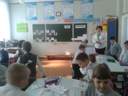 Абдигапарова Н.З. – урок художественного труда. Учащиеся работали в группах, с интересом создавали натюрморт из разных видов материала. Дети много знают об истории натюрморта, активно участвовали в ролевой игре «Это интересно».