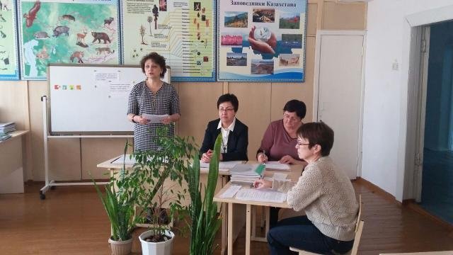 МО казаховедов (руководитель Ахманова М.С.) прошло в форме диспута, были подняты вопросы изучения казахского языка во внеурочное время. Руководителем МО проведено в конце заседания интересное тестирование.