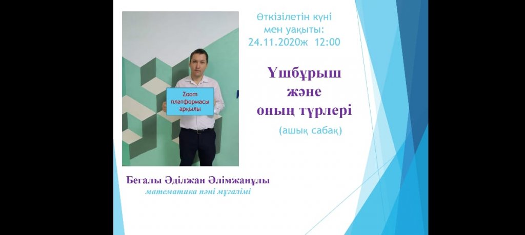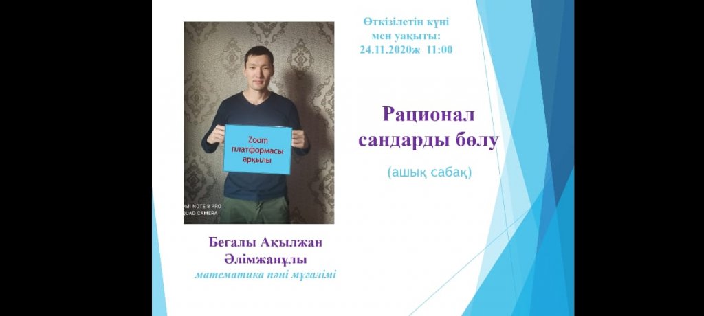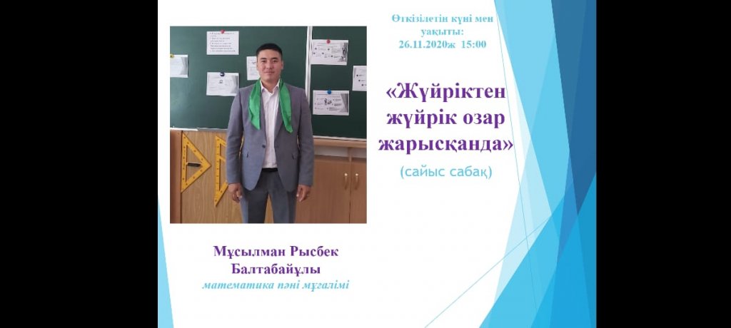 Бегалы Ә.Ә математика пәні мұғалімі педагог-модератор "Үшбұрыш және оның түрлері" тақырыбында ашық сабақ, Бегалы А.Ә математика пәні мұғалімі "Рационал сандарды бөлу", Замзиева Ә.Қ биология пәні мұғалімі "Азық-түлікте көмірсулар, нәруыздар, майлар барын дәлелдеу" зертханалық жұмыс, Мұсылман Р. Б математика пәні мұғалімі педагог- модератор «Жүйріктен жүйрік озар жарысқанда» сайыс сабақ, Мейірман Н.Т информатика пәні мұғалімі педагог-модератор "Мәтіндік процессор" ашық сабақ, Бердешова К.Р. математика пәнінің мұғалімі педагог-эксперт "Кім жүйрік" сайыс сабақ өткізді.